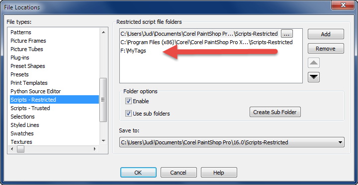 4- Add this folder MyTags (I.e. your folder name) to PSP -
