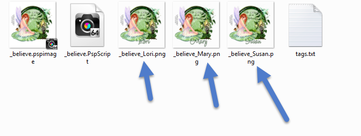 Save this - I usually name it Tags..Place this text file in your folder with your .pspimage, pspscript..You should have 3 things in that file now.