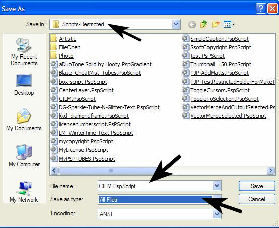 Make sure that you are saving this file in the Restricted Folder. Check to make sure that your drop down box says "All Files"