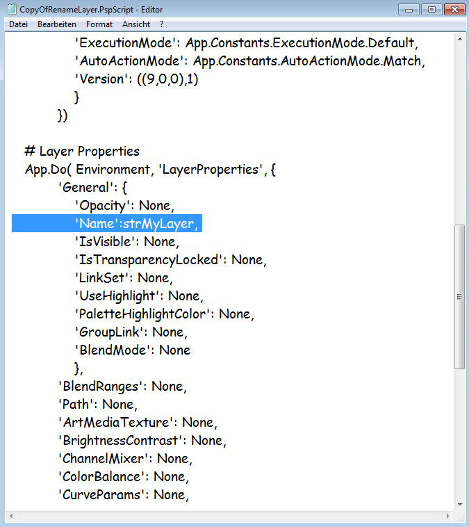 To change that, open the script in the text editor again and go to the LayerProperties-function.
