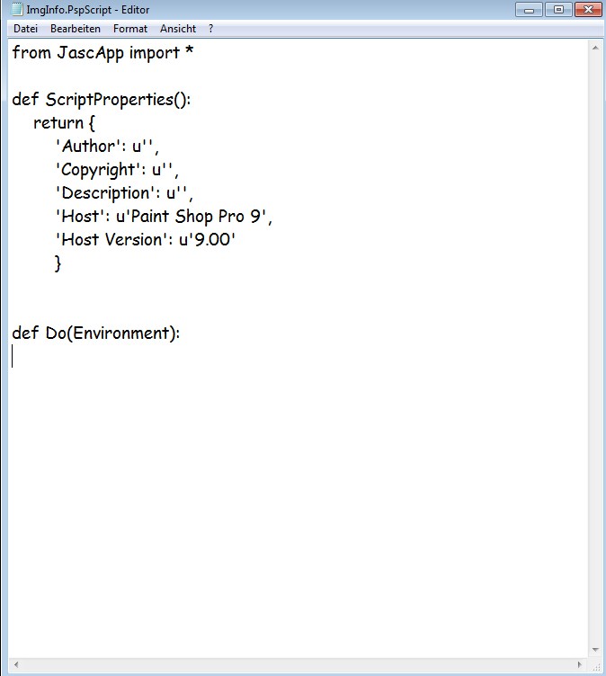 Open your script, save it with a new name and delete everything below the line def Do(Environment):