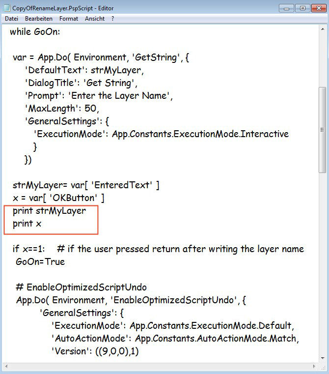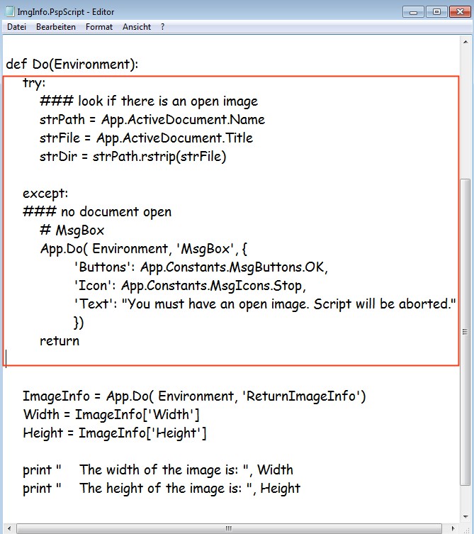 Another nice feature of PSPScripts is the try - except-command, which does exactly what the name says: